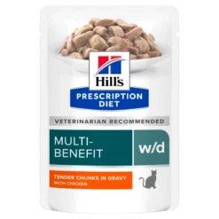 Hill’s PRESCRIPTION DIET w/d Multi-Benefit ist ein diätetisches Katzenfutter zur Regulierung der Glucoseversorgung (Diabetes mellitus) bei erwachsenen Katzen. Es ist ein Katzenfutter zur Gewichtsregulierung, das eigens entwickelt wurde, um Ihrer hungrigen Katze mehrere Vorteile zu bieten: Unterstützung der Harnwegsgesundheit, einer gesunden Verdauung sowie des Blutzucker- und Gewichtsmanagements. Diese Nassnahrung für Katzen wird mit Huhn hergestellt und hat einen köstlichen Geschmack, den Ihre Katze lieben wird.