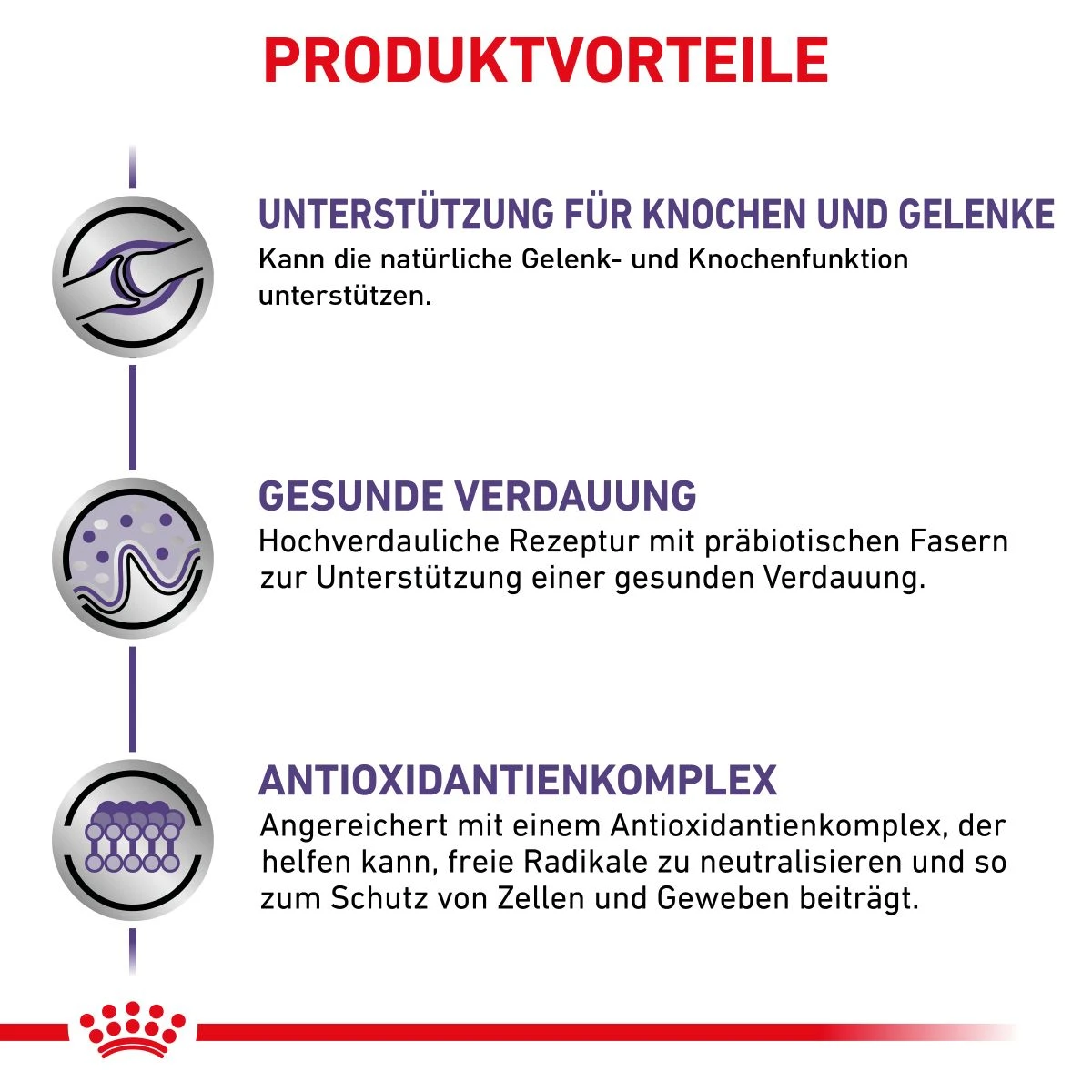 ROYAL CANIN® Adult Large Dogs ist mit einer Mischung aus Antioxidanzien – einschließlich wichtiger Vitamine – angereichert. Diese kann helfen, freie Radikale zu neutralisieren und so zum Schutz von Zellen und Geweben Ihres Hundes beitragen.